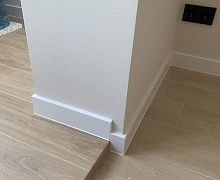 Немецкий плинтус Дёллькен из ХДФ на древесноволокнистой основе перекроет зазор между стеной и полом до 13мм.