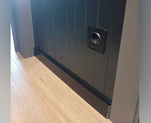 МДФ плинтус от компании "Лука". Перекроет зазор между стеной и полом до 16 мм.