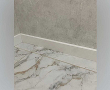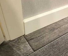 МДФ плинтус от компании "Лука". Перекроет зазор между стеной и полом до 16 мм.