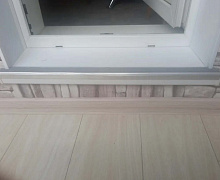 Способ монтажа: алюминиевый порожек без вставки крепится в проем между двумя напольными покрытиями или на ступени при помощи саморезов (идут в комплекте). Затем прорезиненную ПВХ вставку нужно нагреть строительным или обычным феном, либо подержать в горячей воде, чтобы материал стал мягче и легче вошел в паз профиля.