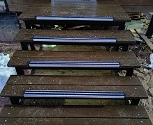 Способ монтажа: алюминиевый порожек без вставки крепится на ступени при помощи саморезов (идут в комплекте). Затем прорезиненную ПВХ вставку нужно нагреть строительным или обычным феном, либо подержать в горячей воде, чтобы материал стал мягче и легче вошел в паз профиля.